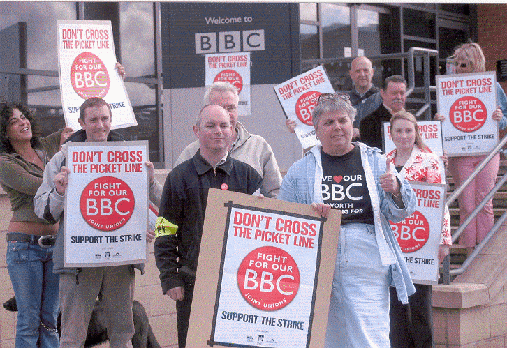 Diana joins colleagues at the BBC on strike following the Hutton report on the corporation. |